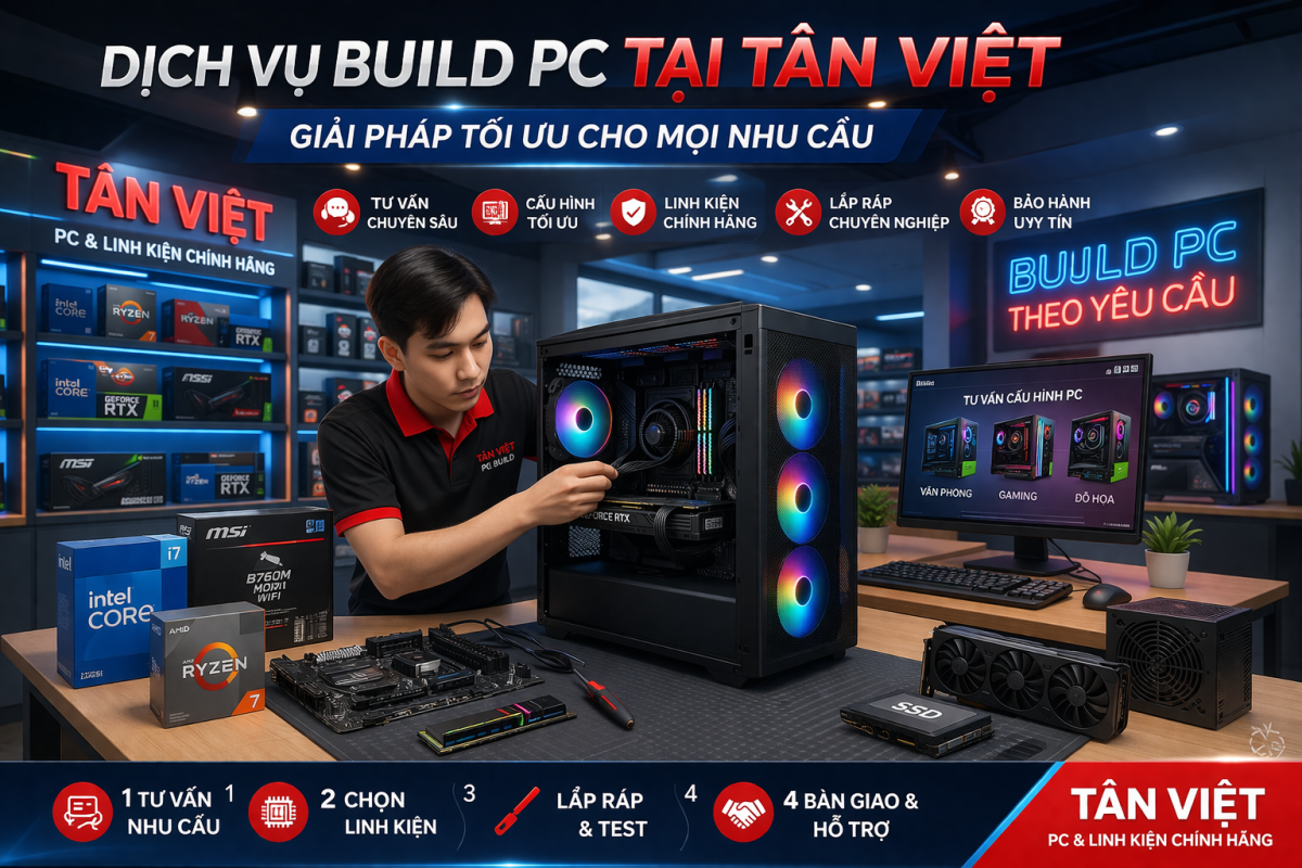 Giới thiệu dịch vụ build PC tại Tân Việt Electronic Components Trong thời đại công nghệ phát triển nhanh chóng, nhu cầu sở hữu một bộ máy tính phù hợp với công việc và giải trí ngày càng tăng cao. Tuy nhiên, không phải ai cũng có đủ kiến thức để tự lựa chọn linh […]